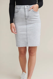 Elisa Rock besteht aus 98 % Bio-Baumwolle und 2 % Elasthan. Es ist in der Taille glatt und hat einen Schlitz auf der Rückseite. Kombiniere es mit einem Rollkragenpullover, Stiefeletten für den perfekten Look!