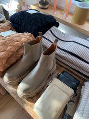 Coole Plateau Chelsea Boots in taupe von Tim&Simonsen. Außen wie innen in sehr weicher Leder und die Bekannte Memoryschaum Sohle macht den Stiefel einfach himmlisch!