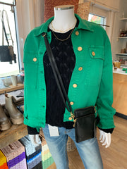 Mega coole Jeansjacke in grasgrün von Sofie Schnoor. Sie hat ein leicht kastigen Schnitt ist aber nicht oversized. Duch die 5% Elastane ist sie sehr weich und angenehm. Super als Übergangsjacke oder später statt eine Strickjacke.