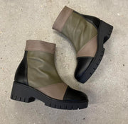 Lederstiefel in Kombination aus 3 Lederfarben von Tim&Simonsen. Die Farben Army, Taupe und Schwarz. Mit Reißverschluss und Gummisohle und natürlich die super weiche Memoryschaum Sohle die wir von Tim&Simonsen gewohnt sind.